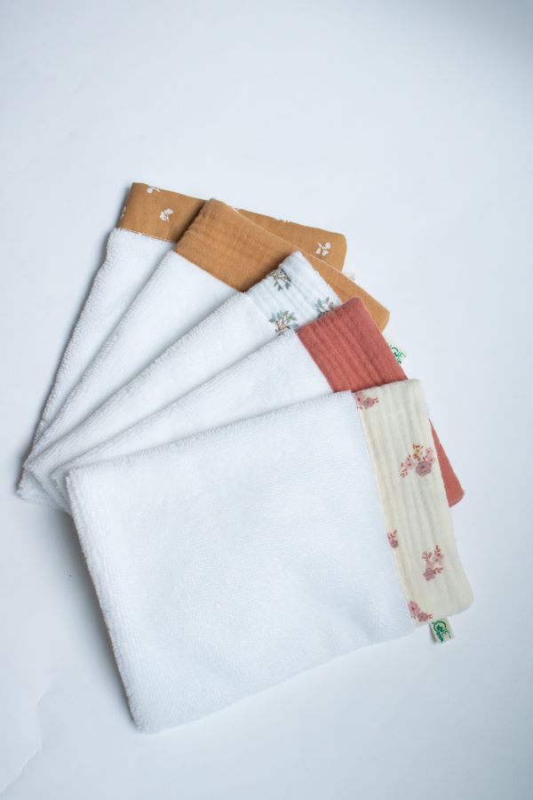 Il est en éponge de bambou et gaze de coton doux et absorbant.