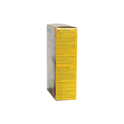 Compter 125 g de flocons de pommes de terre pour 4 personnes. Faire chauffer 1/2 litre d'eau ou de lait. A ébullition, retirer du feu, ajouter 250 ml de lait froid ou un peu plus pour une purée plus onctueuse), puis verser les flocons jusqu'à ce que le mélange soit homogène. Laisser reposer 1 minute, ajouter une noix de beurre puis remuer délicatement à l'aide d'une spatule. Assaisonner selon votre goût. Les flocons de pomme de terre seront parfaits pour la réalisation de vos purées, accompagnées de jambon, saucisse ou steak… Ils seront également délicieux pour des recettes plus élaborées : galettes de pommes de terre, hachis Parmentier…