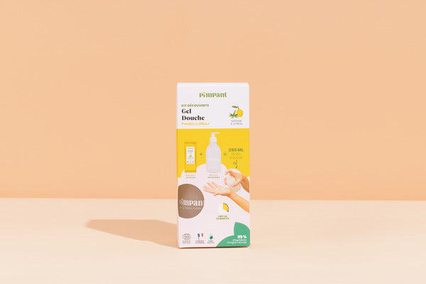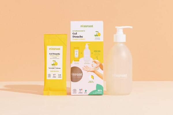 Ce kit contient 1 bouteille 300ml + 1 recharge de gel douche en poudre à l'eau du robinet et à vous le gel douche qui sent bon, qui mousse bien et qui prend soin de la peau et de la planète ! Oui, oui, on ne fait pas les choses à moitié chez Pimpant.