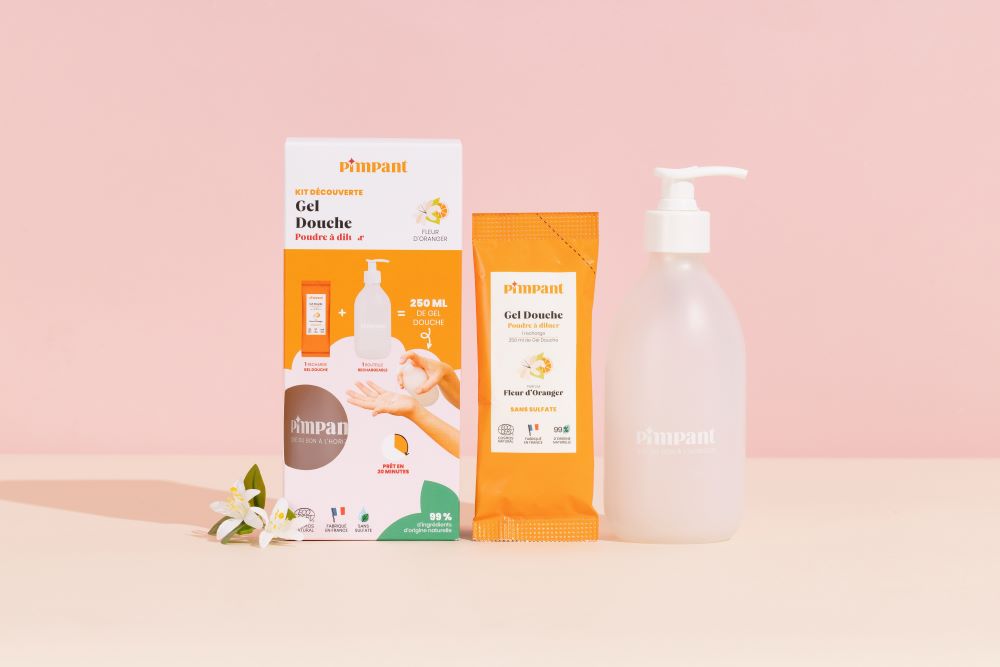 Ce kit contient 1 bouteille 300ml + 1 recharge de gel douche en poudre à diluer.
