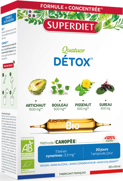 Superdiet a développé pour vous ce Quatuor, qui associe des plantes aux propriétés drainantes :